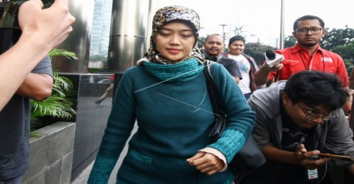 Keluar dari gedung KPK, Nunik terlihat hanya tersenyum sambil menunjuk-nunjuk ke arah gedung komisi antirasuah. Dia terus tersenyum, sembari menyusuri jalan keluar Gedung KPK. Sampai di luar, dia berbelok ke arah kanan gedung KPK, tepatnya ke Royal Kuningan Hotel.