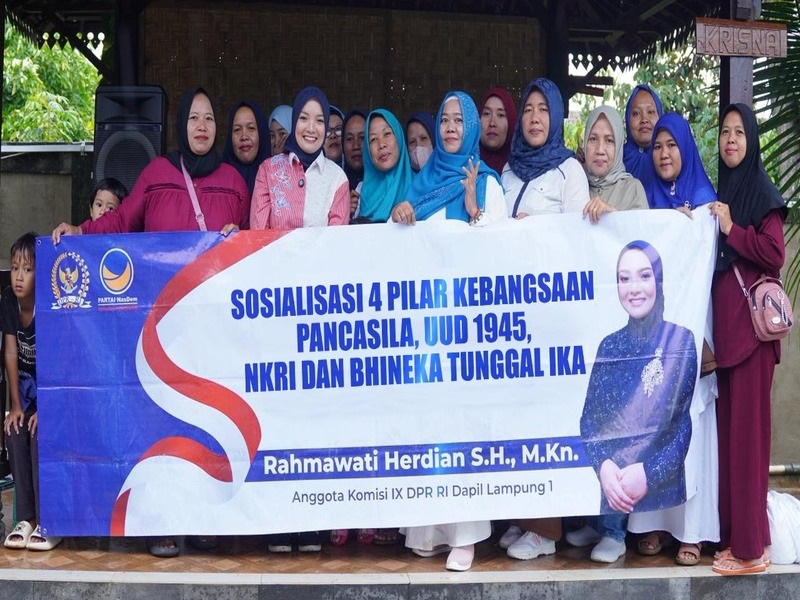 Bandarlampung, LE — Anggota MPR–DPR RI Rahmawati Herdian menegaskan pentingnya menjaga keutuhan Negara Kesatuan Republik Indonesia (NKRI) dengan memahami dan mengamalkan Empat Pilar Kebangsaan.