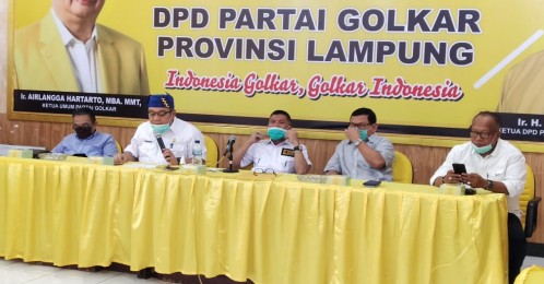 Bandarlampung, LE - DPD Partai Golkar Provinsi Lampung menggelar Konfrensi Pers bagi 4 Bakal Calon Kepala Daerah yang mendapatkan "Surat Tugas" DPP Partai Golkar jelang Pilkada serentak Tahun 2020 mendatang, Selasa (24/3/2020)