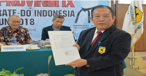 Bandarlampung, LE - Hannibal untuk kali ketiga pimpin Federasi Olahraga Karate Indonesia (Forki) Provinsi Lampung, setelah terpilih secara aklamasi pada musyawarah provinsi (Musprov) IX yang berlangsung di Hotel Kurnia Perdana Bandarlampung, (23/12/2018).
