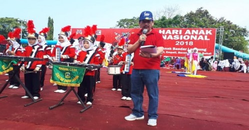 Bandarlampung, LE – Walikota Bandarlampung, Herman HN meminta guru untuk terus menanamkan pendidikan tentang keimanan dan ketaqwaan kepada siswa sejak dini, ketika membuka acara peringatan Hari Anak Nasional (HAN) di Lapangan Baruna Panjang, Senin (13/8/2018).