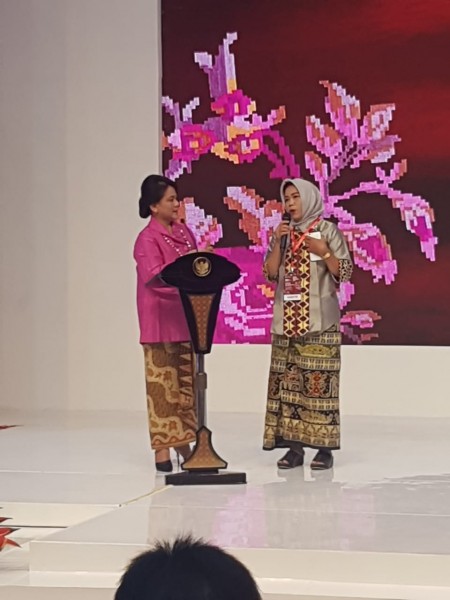 Keindahan Tapis Lampung Nurbaiti mendapat apresiasi Ibu Negara Iriana Jokowi, yang terpesona dengan keindahan kain tenun khas Lampung tersebut.