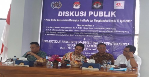 Kegiatan itu diawali dengan pelantikan Mappilu-PWI se-kabupaten-kota se-Lampung oleh Plt Ketua PWI Nizwar.