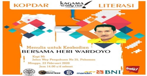 Walau ditaja oleh Kagama, kopdar literasi ini terbuka untuk umum dengan mengundang kantung-kantung komunitas literasi di Bandarlampung. Edisi "Menulis untuk Keabadian bersama Heri Wardoyo" selain didukung oleh Kagama Lampung juga mendapat support dari Warkop WAW, Bank Indonesia, Bank Mandiri dan Bank BNI. (LE-1)