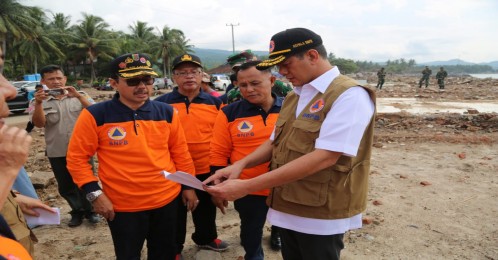 Kalianda, LE - Kepala Badan Nasional Penanggulangan Bencana (BNPB) Letjen TNI Doni Monardo mengunjungi sejumlah lokasi terdampak tsunami di Kabupaten Lampung Selatan, Minggu (13/1/2019).