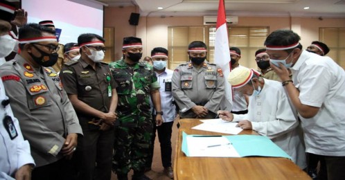 Kemudian dilanjutkan dengan dan penandatanganan pernyataan setia kepada NKRI sebagai pertanda seluruh anggota Khilafatul Muslimin telah keluar dari Organisasi Khilafatul Muslimin. Baca juga: Bupati Egi Tembus Forum Internasional Jepang