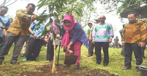 Kotaagung, LE - Bupati Tanggamus Hj. Dewi Handajani, SE.,MM., Kamis pagi menghadiri kegiatan Aksi penanaman pohon dan bersih-bersih Sungai di Kompleks Wisata Air Terjun Way Lalaan Kotaagung Timur.