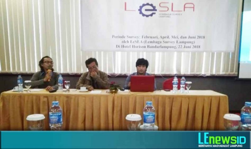 Bandarlampung, LE – Menjelang pelaksanaan coblosan pemilihan gubernur (Pilgub) Lampung pada 27 Juni 2018, Lembaga Survey Lampung (Lesla) merilis data elektabilitas empat pasangan calon (Paslon) gubernur dan wakil gubernur Lampung.