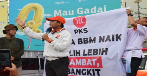 "Kami PKS, di tengah rintik hujan tidak menurunkan semangat kader PKS untuk menyuarakan keadilan tolak kenaikan BBM. Rasanya baru kemarin rakyat bahagia dan tersenyum dengan lomba-lomba sebagai bentuk rasa syukur bisa merayakan kemerdekaan setelah dua tahun pandemi covid dan tidak bisa melakukan kegiatan apapun. Kini rakyat kembali dibebankan dengan kenaikan harga BBM yang otomatis diiringi dengan kenaikan harga-harga yang lain," kata Suhada.