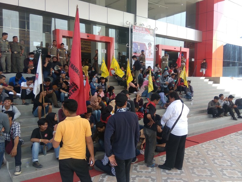 Kemudian, perwakilan anggota Pergerakan Mahasiswa Islam Indonesia (PMII), Pupung, meminta pemkot untuk turun menemui massa aksi. Pasalnya, setelah 2 jam melakukan unjuk rasa, belum ada satupun pihak Pemkot yang menemui massa aksi. Baca juga: Rektor Universitas Lampung Positif Covid-19