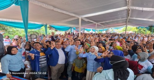 Way Kanan - Ribuan masyarakat Kampung Gunung Sangkaran membludak antusias sambut kampanye tatap muka Calon Bupati dan Wakil Bupati Way Kanan Ali Rahman dan Ayu Asalasiyah yang berlangsung di dusun Tanjung Agung, Kampung Gunung Sangkaran, Kecamatan Blambangan Umpu. Minggu (3/11/2024).