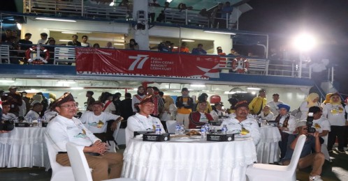 Selain melihat langsung anak Gunung Krakatau dengan menggunakan Kapal Ferry Jatra II, para peserta Tour Krakatau selama di Kapal, dihibur dengan berbagai penampilan Pesona Kemilau Krakatau dan aneka hiburan sambil menikmati makan malam. (Dinas Kominfotik Provinsi Lampung).