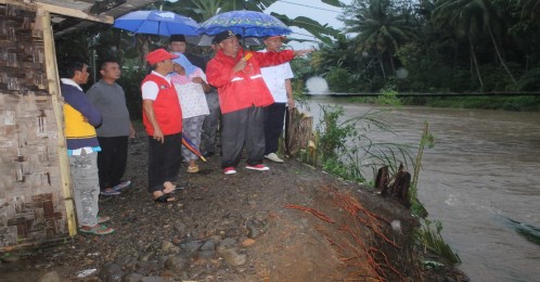 Wabup Tanggamus Hi AM Syafii SAg, bersama Asisten lll Firman Rani, Kepala Bappeda Hendra Wijaya, Kadis Kominfo Sabaruddin, Kabid Cipta Karya Dinas PU, meninjau lokasi banjir di Way Liwok, Kecamatan Wonosobo dan Way Belu, Kecamatan Kota Agung Barat Rabu (7/11).