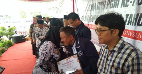 Dipenghujung acara, PGRI Kota Bandarlampung memberikan sejumlah penghargaan kepada elemen masyarakat yang berperan dalam kemajuan dunia pendidikan. Penghargaan diserahkan oleh Walikota Eva Dwiana.
