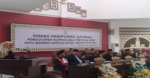 Pelantikan pimpinan Dewan berdasarkan SK Gubernur Lampung Nomor : G/655/B.01/HK/2019 tentang Peresmian Pengangkatan Pimpinan Dewan Perwakilan Rakyat Daerah Kota Bandarlampung tahun 2019-2024.