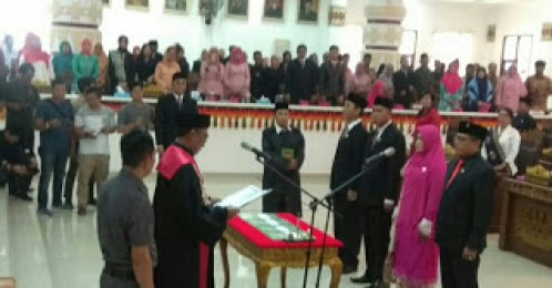 Pelantikan dan pengambilan sumpah jabatan dilakukan Ketua Pengadilan Negeri Kelas I Tanjungkarang Timur Pradoko SH, dalam rapat paripurnan di ruang sidang Utama DPRD Bandarlampung, Senin (22/9/2019). Baca juga: Herman HN Bantu Makanan dan Minuman Para Pengungsi